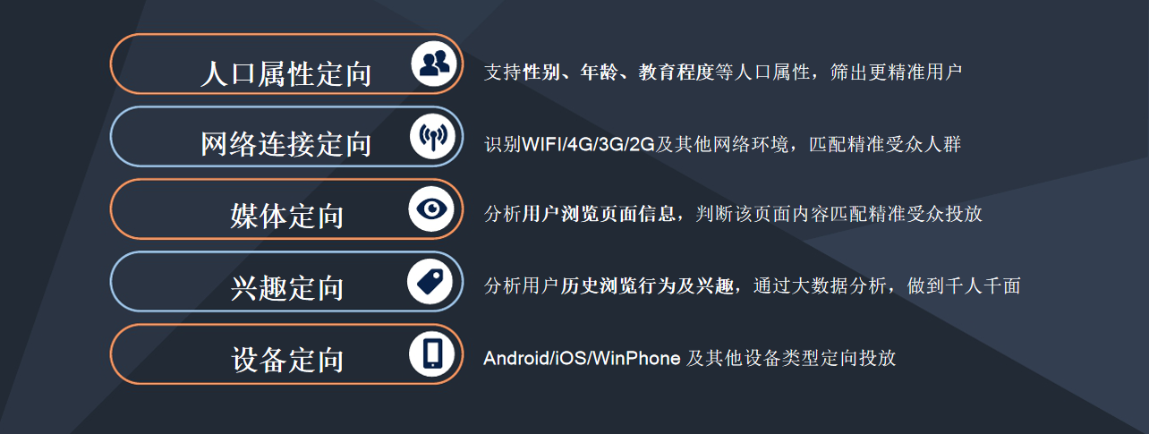 APP行(xíng)為(wèi)定向    定向邏輯:根據用(yòng)戶曆史app下(xià)載、使用(yòng)行(xíng)為(wèi),為(wèi)用(yòng÷)戶打标簽