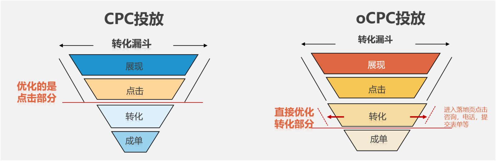 oCPC(Optimized Cost per Click)是(shì)一(yī)種基于轉化(huà)的(de)智能(λnéng)投放(fàng)模式,通(tōng)過和(hé)廣告主進行(xíng)轉化(huà)數(shù)據的(de)深度對(duì)接,自(zì)動識别優質流量,智能(néng)為(≥wèi)每一(yī)次點擊出價,增加高(gāo)轉化(huà)率流量的(de)獲取,減少(shǎo)低(dī)轉化(huà)率流量的(de)展現(xiàn),幫助廣告主提升推廣效果¥和(hé)投放(fàng)效率。